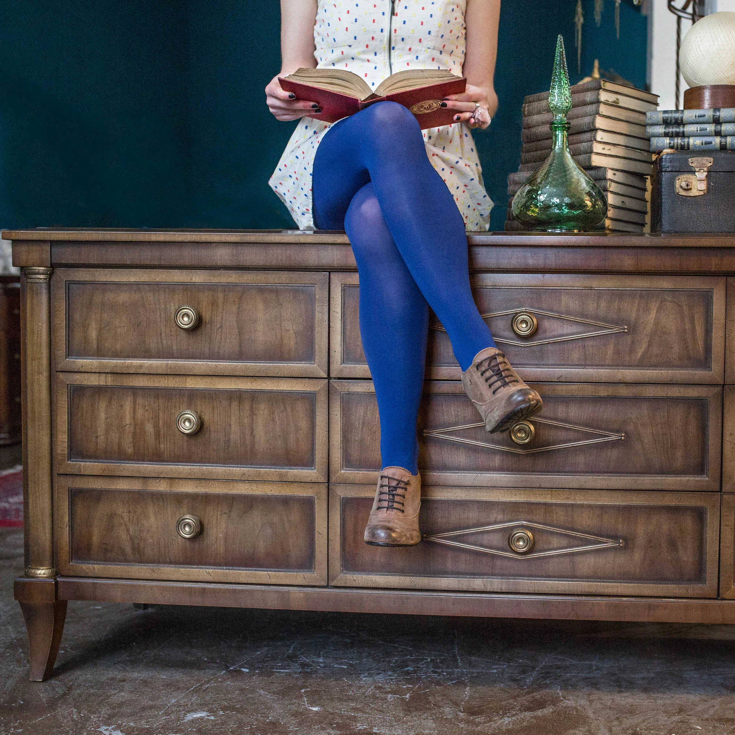 Sturdy and structurally sound. In good vintage condition. Solid wood. Dovetail joint construction. Paint is chippy and scuffed- which is why we love it!